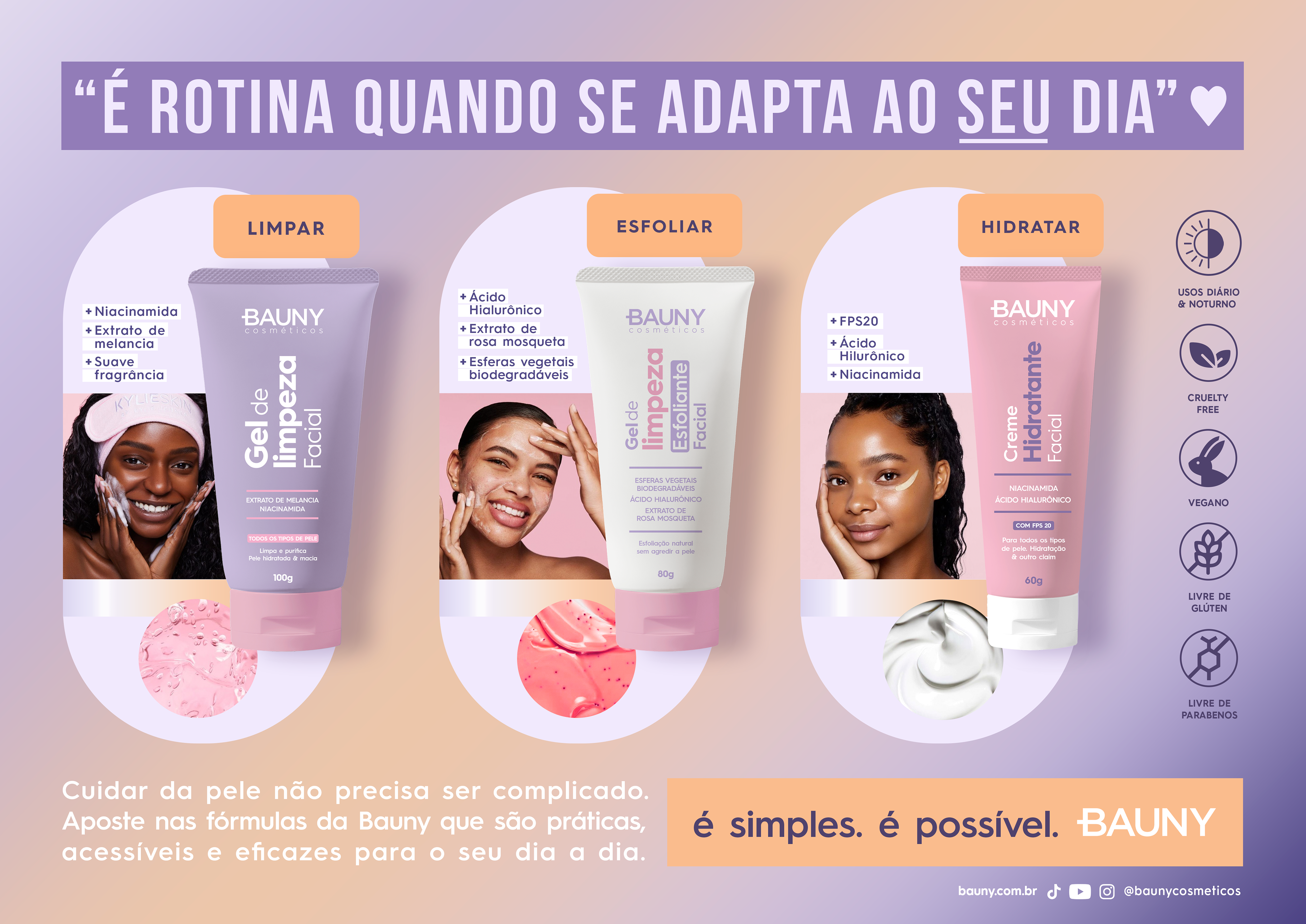 A Bauny Cosméticos é uma marca de maquiagem e beleza brasileira. A marca foi pensada para ser aquela melhor amiga presente nos rituais de beleza, através de fórmulas multifuncionais que tratam a pele e respeitam a sua beleza natural ou mesmo por meio da sua diversidade de cores.